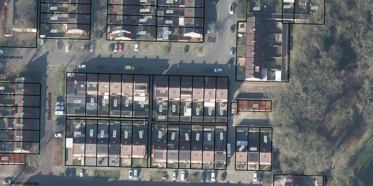 Het Oosterveld 65 is gelegen op kadastraal perceel LNK00Z3686. Deze kadastrale aanduiding is uniek en wordt gebruikt door het Kadaster om eigendomsrechten en andere zakelijke rechten vast te leggen. Het perceel maakt onderdeel uit van de kadastrale gemeente Lonneker.