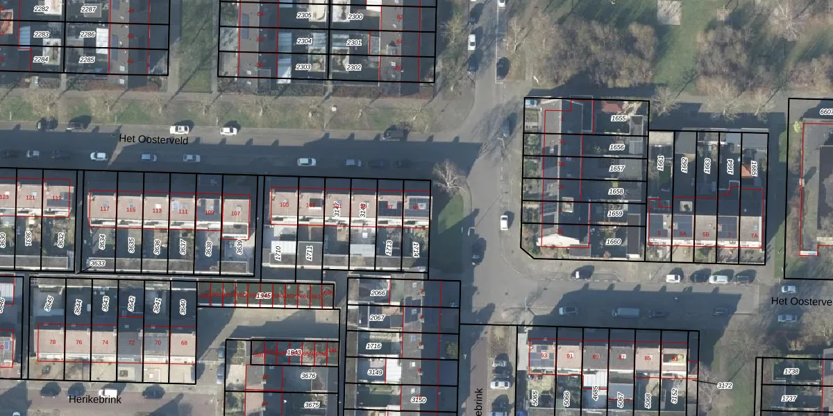 Het perceel waarop Het Oosterveld 95 staat heeft een oppervlakte van 145 m². Dit is een middelgroot perceel. De perceeloppervlakte wordt geregistreerd door het Kadaster. Gedetailleerde informatie over de maten van dit perceel kunt u vinden in het rapport Kadastrale kaart met maatvoering van Het Oosterveld 95.