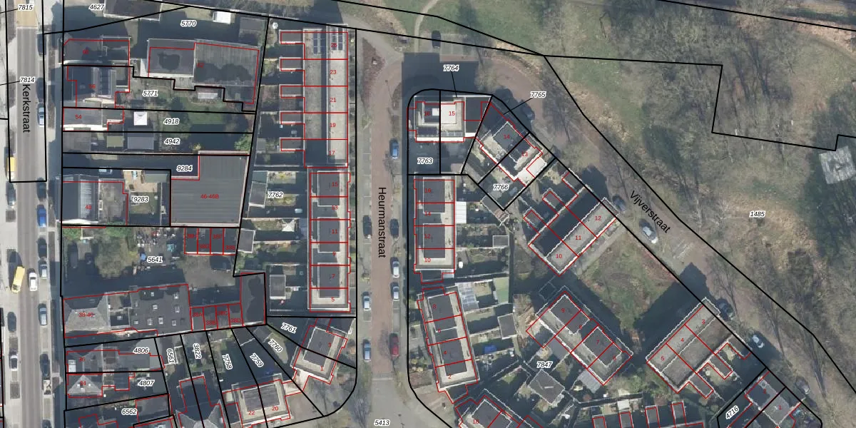 Het perceel waarop Heurmanstraat 14 staat heeft een oppervlakte van 4503 m². Dit is een zeer groot perceel. De perceeloppervlakte wordt geregistreerd door het Kadaster. Gedetailleerde informatie over de maten van dit perceel kunt u vinden in het rapport Kadastrale kaart met maatvoering van Heurmanstraat 14.