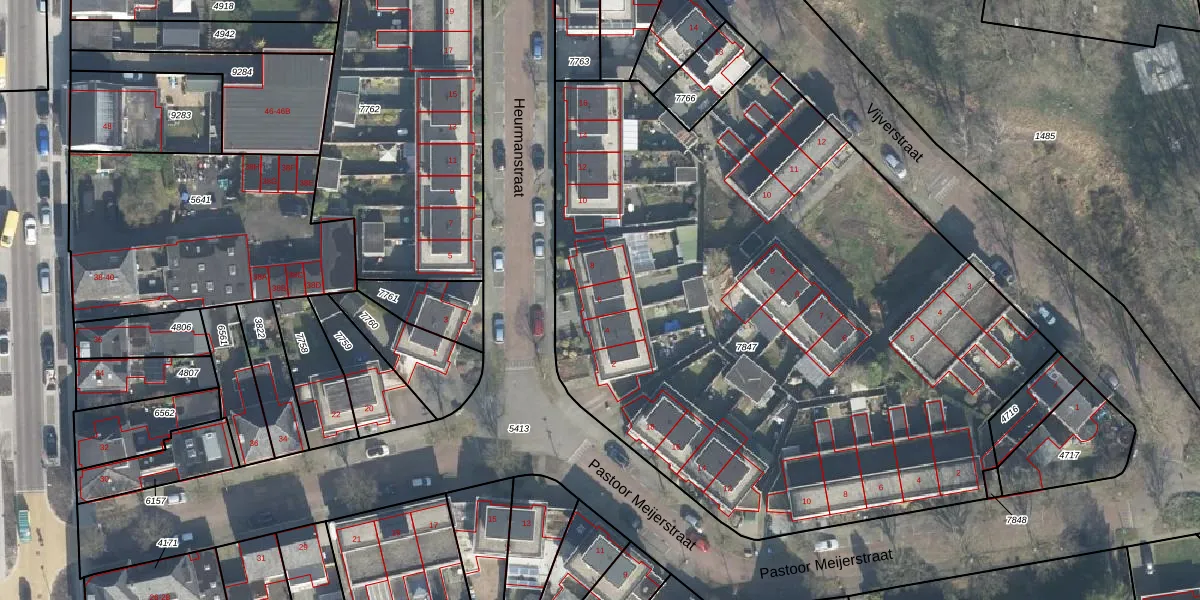 Het perceel waarop Heurmanstraat 6 staat heeft een oppervlakte van 4503 m². Dit is een zeer groot perceel. De perceeloppervlakte wordt geregistreerd door het Kadaster. Gedetailleerde informatie over de maten van dit perceel kunt u vinden in het rapport Kadastrale kaart met maatvoering van Heurmanstraat 6.