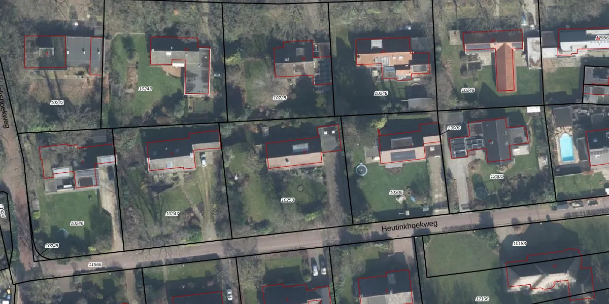 Heutinkhoekweg 5 is gelegen op kadastraal perceel LNK00O10253. Deze kadastrale aanduiding is uniek en wordt gebruikt door het Kadaster om eigendomsrechten en andere zakelijke rechten vast te leggen. Het perceel maakt onderdeel uit van de kadastrale gemeente Lonneker.
