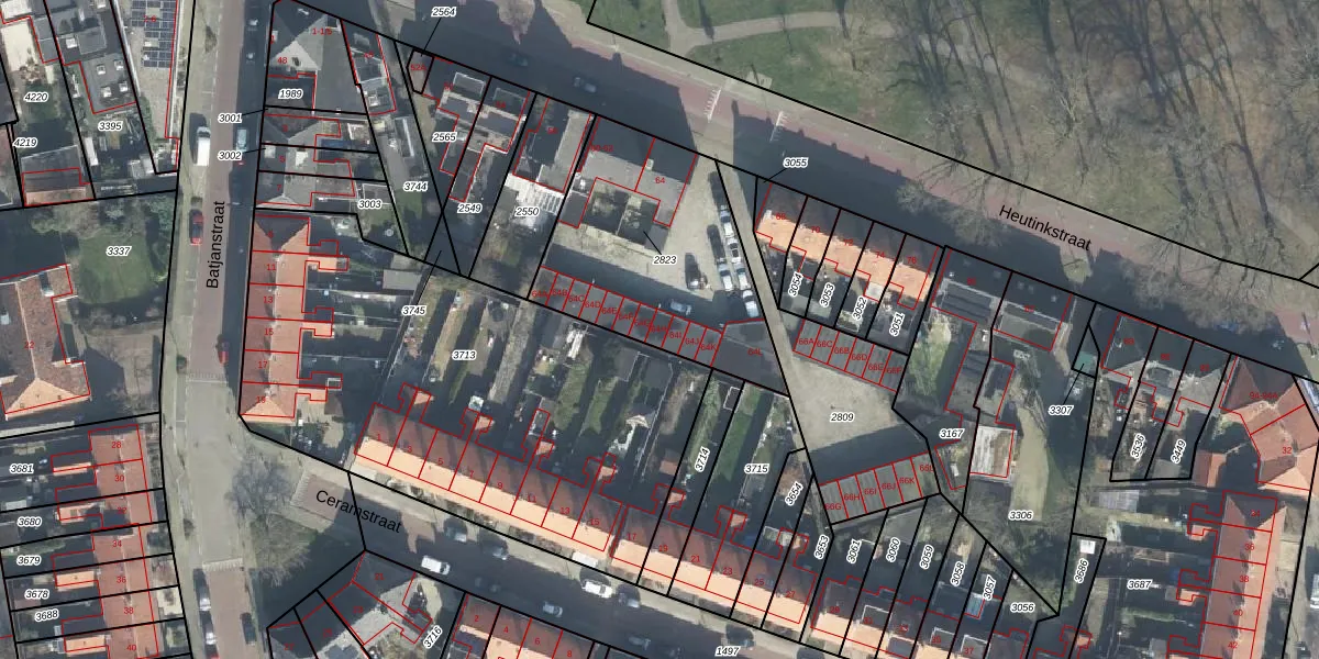 Het perceel waarop Heutinkstraat 64-H staat heeft een oppervlakte van 925 m². Dit is een groot perceel. De perceeloppervlakte wordt geregistreerd door het Kadaster. Gedetailleerde informatie over de maten van dit perceel kunt u vinden in het rapport Kadastrale kaart met maatvoering van Heutinkstraat 64-H.