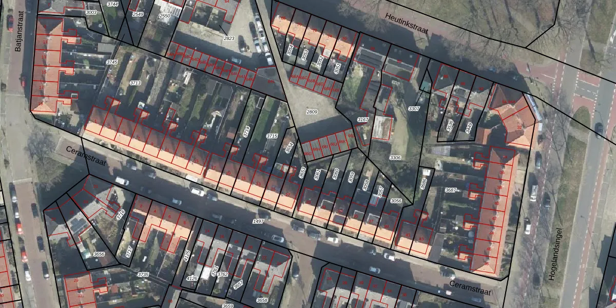 Het perceel waarop Heutinkstraat 66-G staat heeft een oppervlakte van 570 m². Dit is een groot perceel. De perceeloppervlakte wordt geregistreerd door het Kadaster. Gedetailleerde informatie over de maten van dit perceel kunt u vinden in het rapport Kadastrale kaart met maatvoering van Heutinkstraat 66-G.