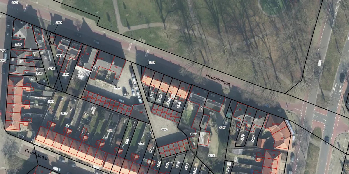 Het perceel waarop Heutinkstraat 74 staat heeft een oppervlakte van 92 m². Dit is een klein perceel. De perceeloppervlakte wordt geregistreerd door het Kadaster. Gedetailleerde informatie over de maten van dit perceel kunt u vinden in het rapport Kadastrale kaart met maatvoering van Heutinkstraat 74.