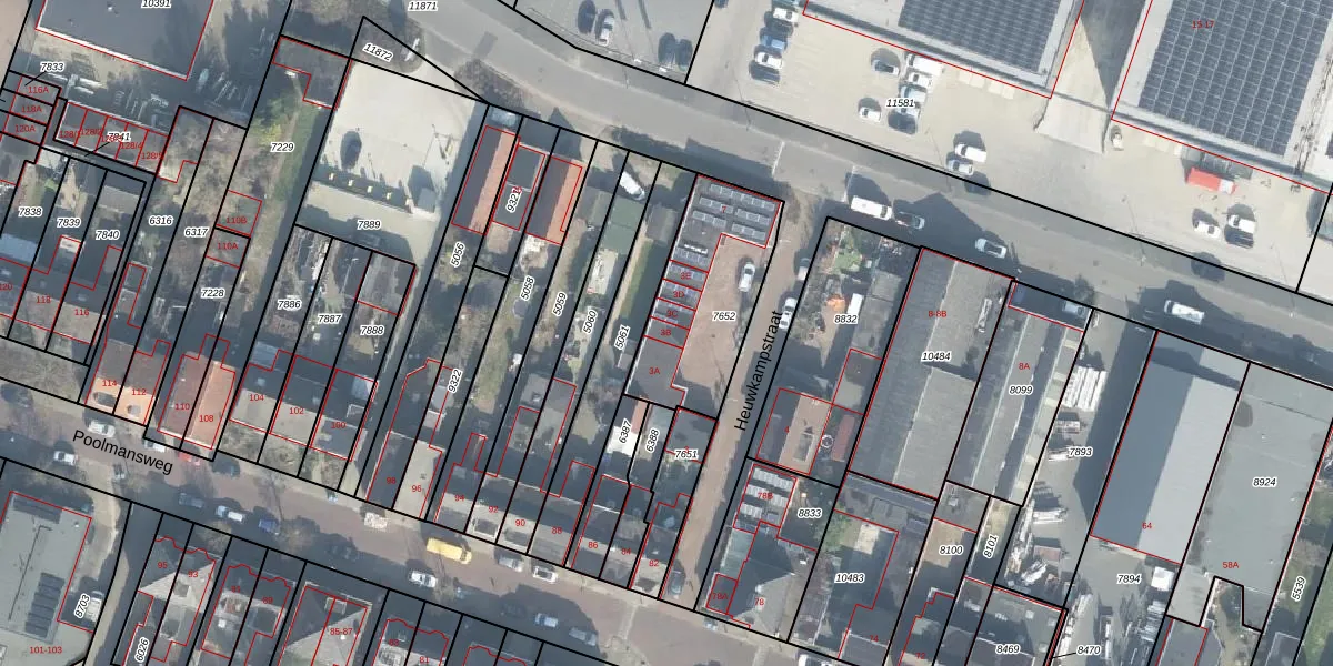 Het perceel waarop Heuwkampstraat 3-B staat heeft een oppervlakte van 495 m². Dit is een groot perceel. De perceeloppervlakte wordt geregistreerd door het Kadaster. Gedetailleerde informatie over de maten van dit perceel kunt u vinden in het rapport Kadastrale kaart met maatvoering van Heuwkampstraat 3-B.