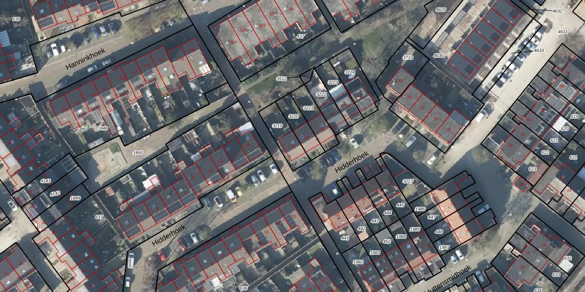 Hidderhoek 21 is gelegen op kadastraal perceel LNK00U3219. Deze kadastrale aanduiding is uniek en wordt gebruikt door het Kadaster om eigendomsrechten en andere zakelijke rechten vast te leggen. Het perceel maakt onderdeel uit van de kadastrale gemeente Lonneker.
