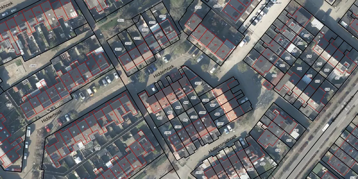 Het perceel waarop Hidderhoek 28 staat heeft een oppervlakte van 95 m². Dit is een klein perceel. De perceeloppervlakte wordt geregistreerd door het Kadaster. Gedetailleerde informatie over de maten van dit perceel kunt u vinden in het rapport Kadastrale kaart met maatvoering van Hidderhoek 28.