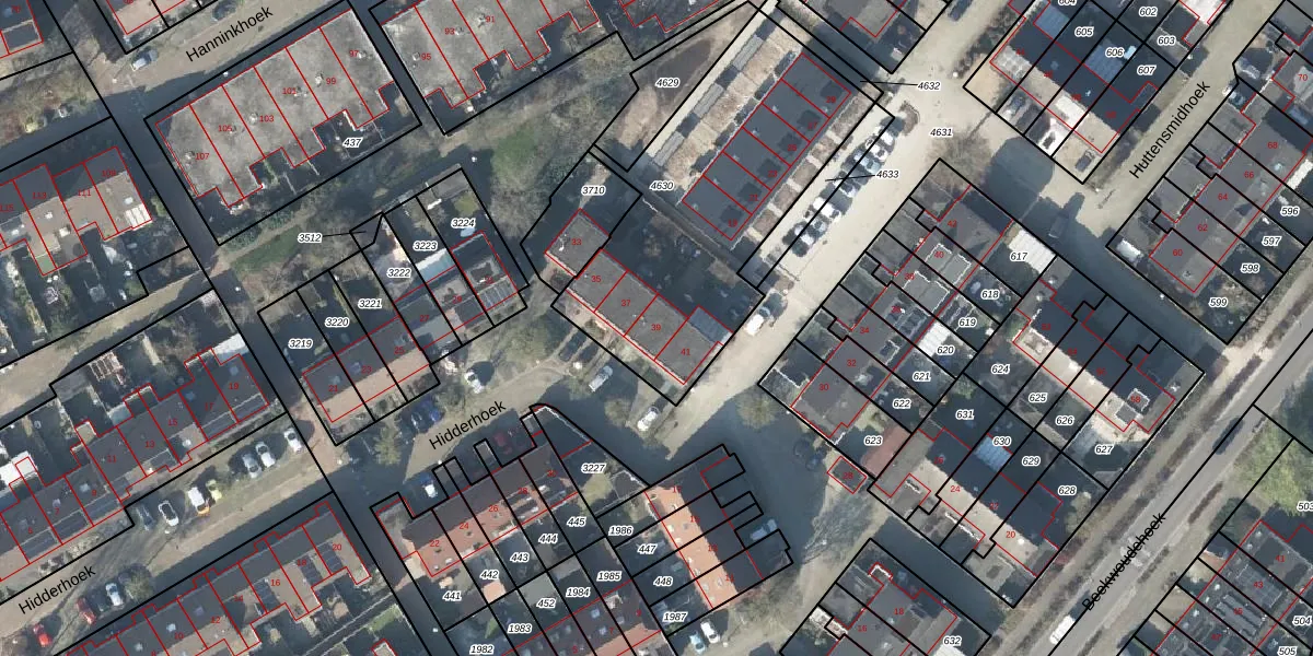 Hidderhoek 39 is gelegen op kadastraal perceel LNK00U4630. Deze kadastrale aanduiding is uniek en wordt gebruikt door het Kadaster om eigendomsrechten en andere zakelijke rechten vast te leggen. Het perceel maakt onderdeel uit van de kadastrale gemeente Lonneker.
