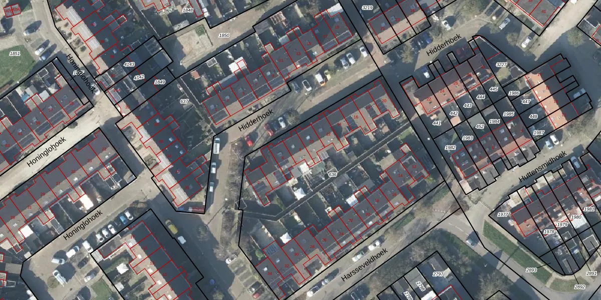 Het perceel waarop Hidderhoek 8 staat heeft een oppervlakte van 2890 m². Dit is een zeer groot perceel. De perceeloppervlakte wordt geregistreerd door het Kadaster. Gedetailleerde informatie over de maten van dit perceel kunt u vinden in het rapport Kadastrale kaart met maatvoering van Hidderhoek 8.