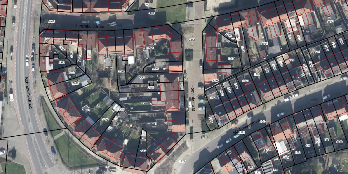 Gebruik de zoekbalk of klik op een perceel voor informatie over de adressen binnen dit perceel.