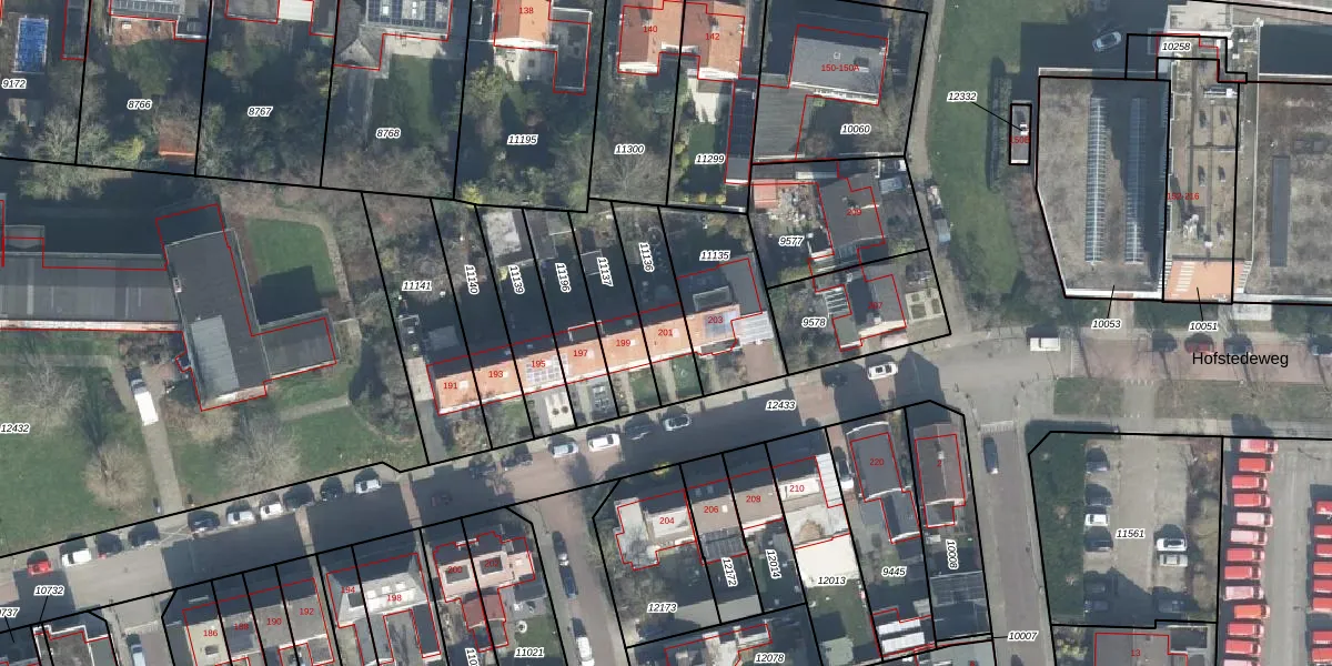 Het perceel waarop Hofstedeweg 201 staat heeft een oppervlakte van 201 m². Dit is een middelgroot perceel. De perceeloppervlakte wordt geregistreerd door het Kadaster. Gedetailleerde informatie over de maten van dit perceel kunt u vinden in het rapport Kadastrale kaart met maatvoering van Hofstedeweg 201.