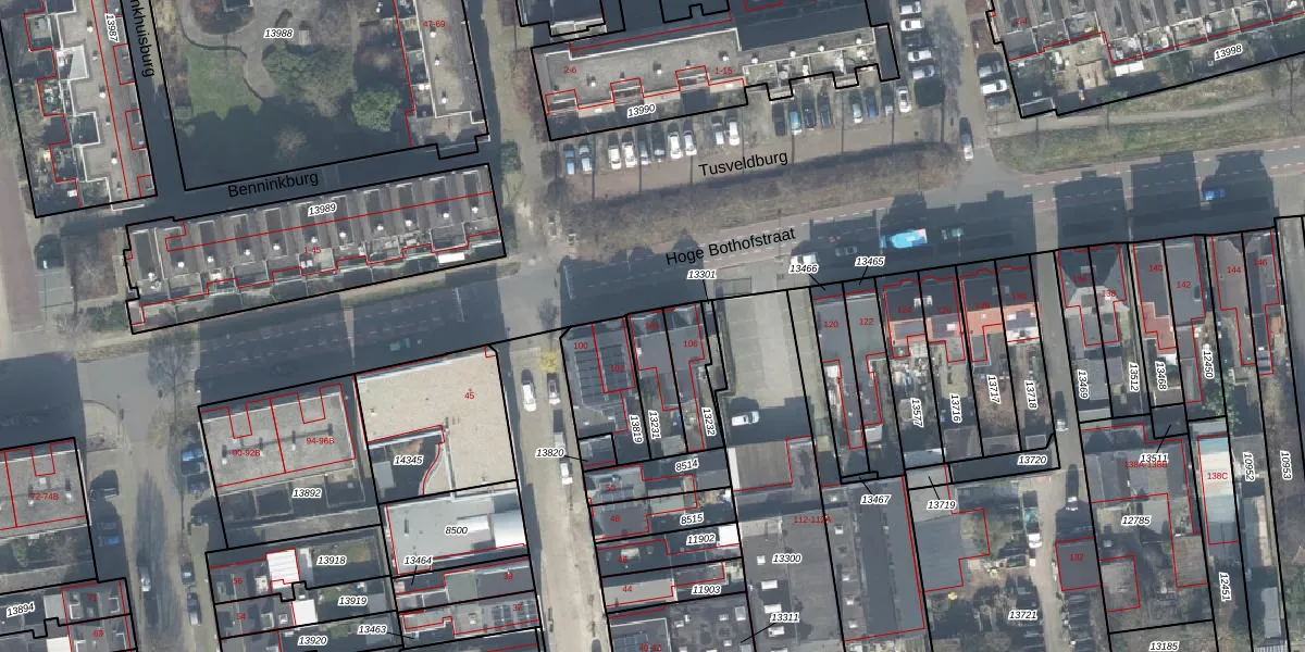 Het perceel waarop Hoge Bothofstraat 104 staat heeft een oppervlakte van 130 m². Dit is een middelgroot perceel. De perceeloppervlakte wordt geregistreerd door het Kadaster. Gedetailleerde informatie over de maten van dit perceel kunt u vinden in het rapport Kadastrale kaart met maatvoering van Hoge Bothofstraat 104.