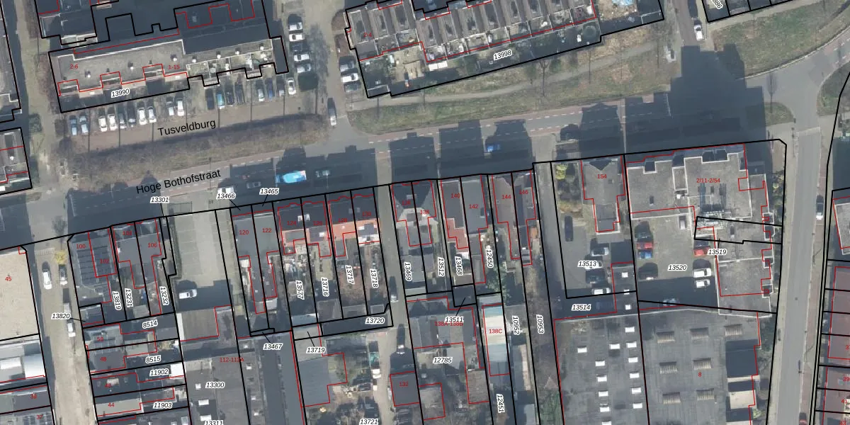 Hoge Bothofstraat 138 is gelegen op kadastraal perceel ESD00D13512. Deze kadastrale aanduiding is uniek en wordt gebruikt door het Kadaster om eigendomsrechten en andere zakelijke rechten vast te leggen. Het perceel maakt onderdeel uit van de kadastrale gemeente Enschede.