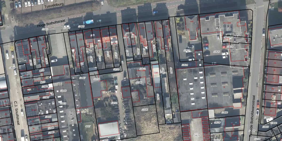 Het perceel waarop Hoge Bothofstraat 138-A staat heeft een oppervlakte van 518 m². Dit is een groot perceel. De perceeloppervlakte wordt geregistreerd door het Kadaster. Gedetailleerde informatie over de maten van dit perceel kunt u vinden in het rapport Kadastrale kaart met maatvoering van Hoge Bothofstraat 138-A.