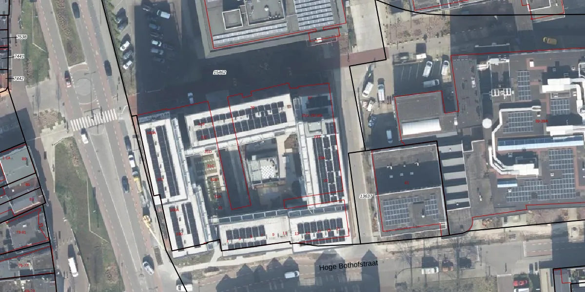 Het perceel waarop Hoge Bothofstraat 25-3 staat heeft een oppervlakte van 9657 m². Dit is een zeer groot perceel. De perceeloppervlakte wordt geregistreerd door het Kadaster. Gedetailleerde informatie over de maten van dit perceel kunt u vinden in het rapport Kadastrale kaart met maatvoering van Hoge Bothofstraat 25-3.