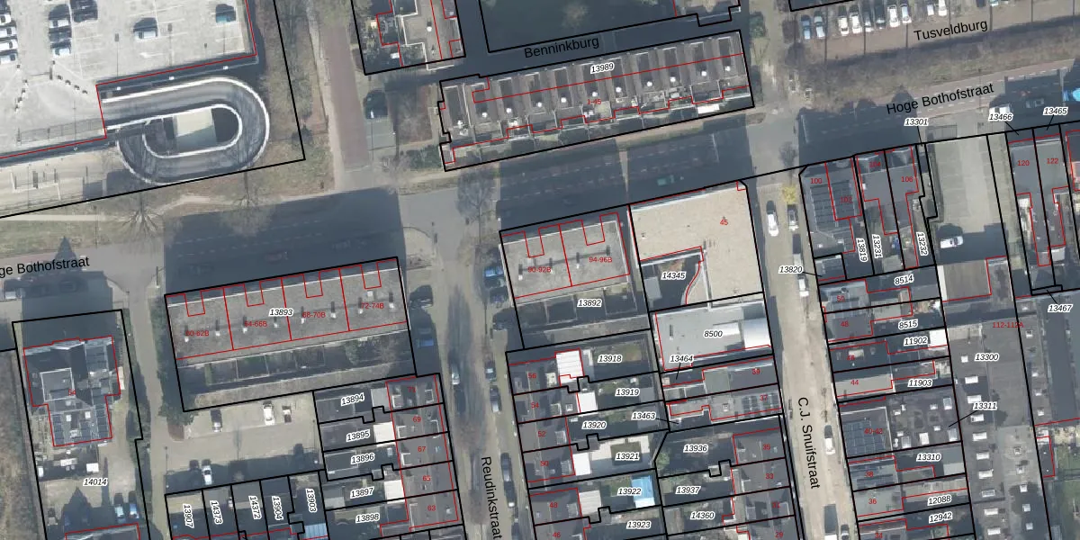 Hoge Bothofstraat 90-A is gelegen op kadastraal perceel ESD00D13892. Deze kadastrale aanduiding is uniek en wordt gebruikt door het Kadaster om eigendomsrechten en andere zakelijke rechten vast te leggen. Het perceel maakt onderdeel uit van de kadastrale gemeente Enschede.