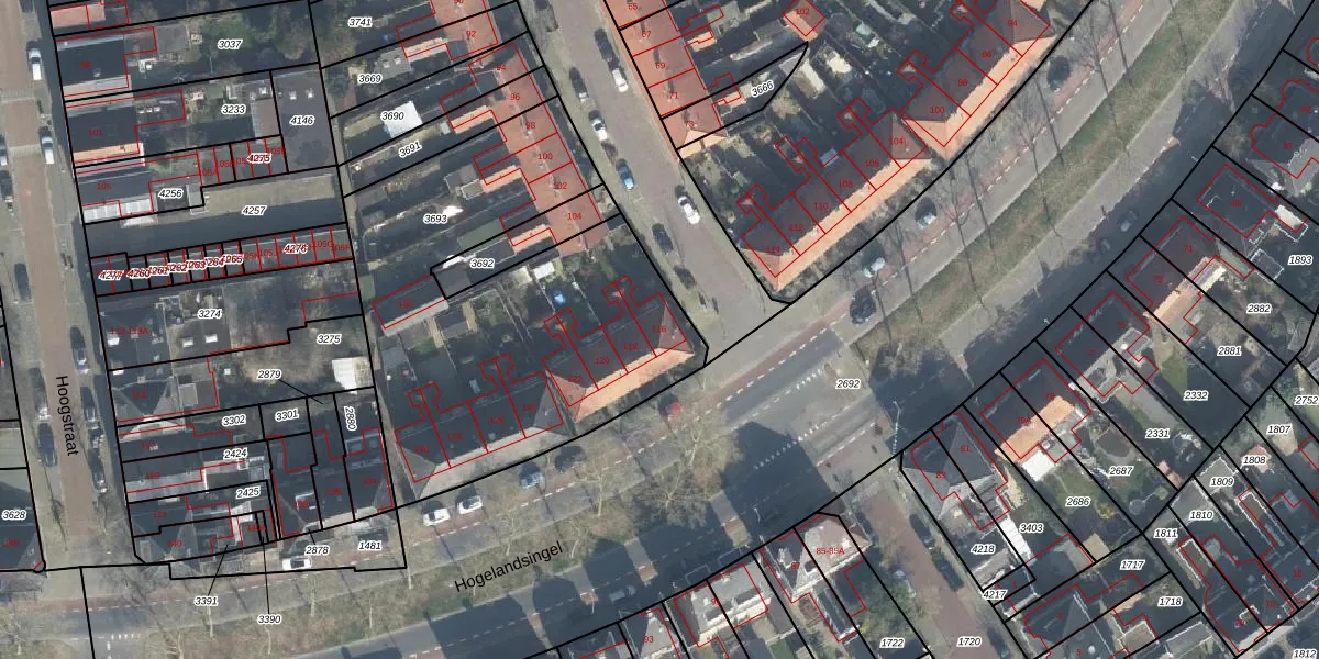 Het perceel waarop Hogelandsingel 116 staat heeft een oppervlakte van 1978 m². Dit is een zeer groot perceel. De perceeloppervlakte wordt geregistreerd door het Kadaster. Gedetailleerde informatie over de maten van dit perceel kunt u vinden in het rapport Kadastrale kaart met maatvoering van Hogelandsingel 116.