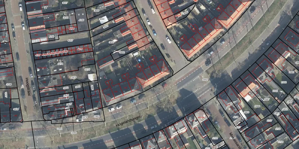 Het perceel waarop Hogelandsingel 120 staat heeft een oppervlakte van 1978 m². Dit is een zeer groot perceel. De perceeloppervlakte wordt geregistreerd door het Kadaster. Gedetailleerde informatie over de maten van dit perceel kunt u vinden in het rapport Kadastrale kaart met maatvoering van Hogelandsingel 120.