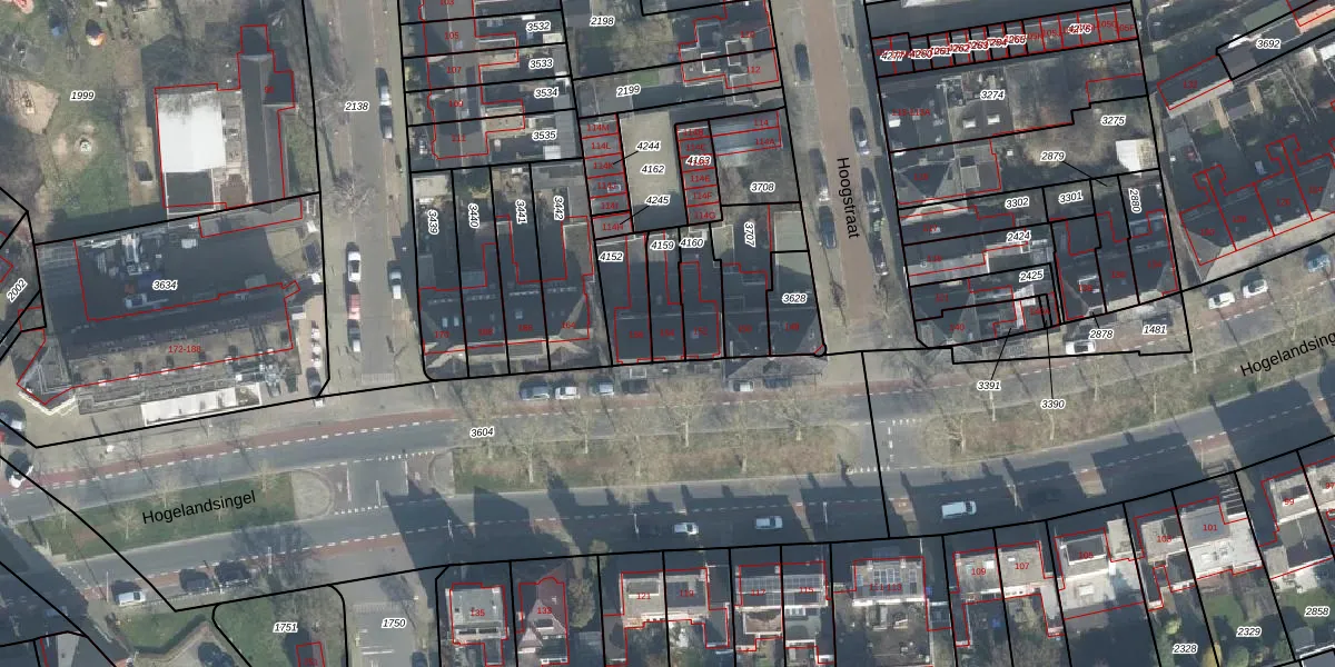 Het perceel waarop Hogelandsingel 154 staat heeft een oppervlakte van 97 m². Dit is een klein perceel. De perceeloppervlakte wordt geregistreerd door het Kadaster. Gedetailleerde informatie over de maten van dit perceel kunt u vinden in het rapport Kadastrale kaart met maatvoering van Hogelandsingel 154.