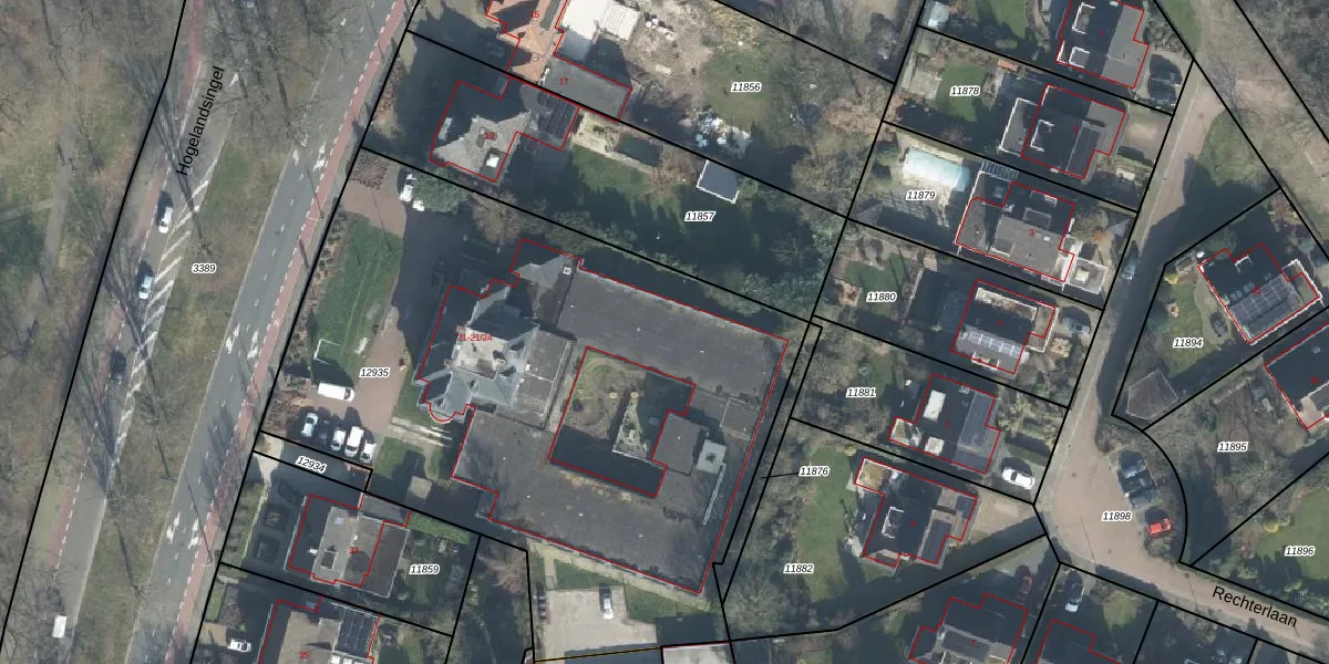 Het perceel waarop Hogelandsingel 21-4 staat heeft een oppervlakte van 3700 m². Dit is een zeer groot perceel. De perceeloppervlakte wordt geregistreerd door het Kadaster. Gedetailleerde informatie over de maten van dit perceel kunt u vinden in het rapport Kadastrale kaart met maatvoering van Hogelandsingel 21-4.