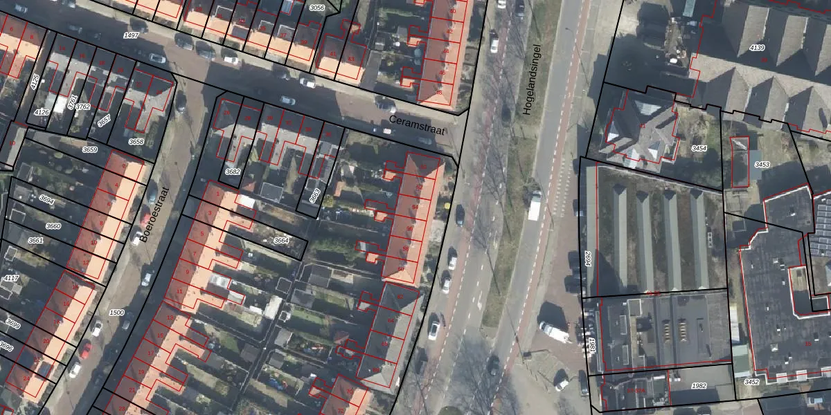 Het perceel waarop Hogelandsingel 54 staat heeft een oppervlakte van 9580 m². Dit is een zeer groot perceel. De perceeloppervlakte wordt geregistreerd door het Kadaster. Gedetailleerde informatie over de maten van dit perceel kunt u vinden in het rapport Kadastrale kaart met maatvoering van Hogelandsingel 54.