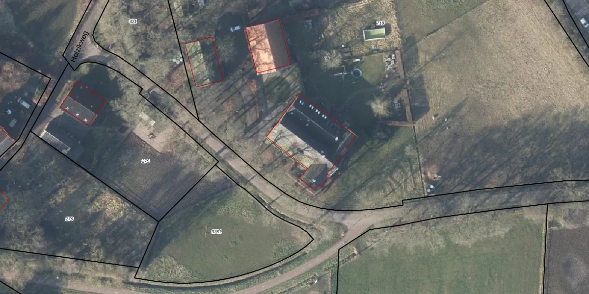Het perceel waarop Holzikweg 7 staat heeft een oppervlakte van 1,6 ha. Dit is een zeer groot perceel. De perceeloppervlakte wordt geregistreerd door het Kadaster. Gedetailleerde informatie over de maten van dit perceel kunt u vinden in het rapport Kadastrale kaart met maatvoering van Holzikweg 7.