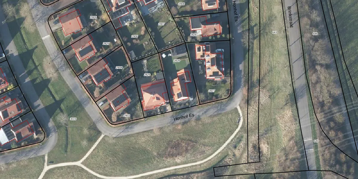 Honhof Es 15 is gelegen op kadastraal perceel LNK00AA2828. Deze kadastrale aanduiding is uniek en wordt gebruikt door het Kadaster om eigendomsrechten en andere zakelijke rechten vast te leggen. Het perceel maakt onderdeel uit van de kadastrale gemeente Lonneker.