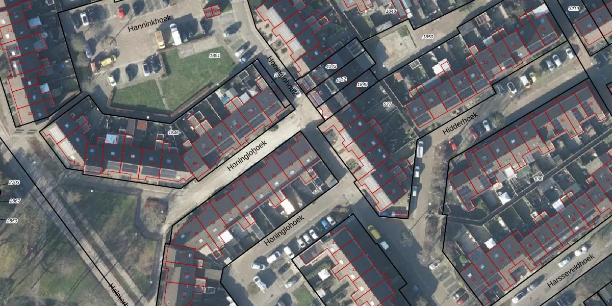 Honinglohoek 21 is gelegen op kadastraal perceel LNK00U642. Deze kadastrale aanduiding is uniek en wordt gebruikt door het Kadaster om eigendomsrechten en andere zakelijke rechten vast te leggen. Het perceel maakt onderdeel uit van de kadastrale gemeente Lonneker.