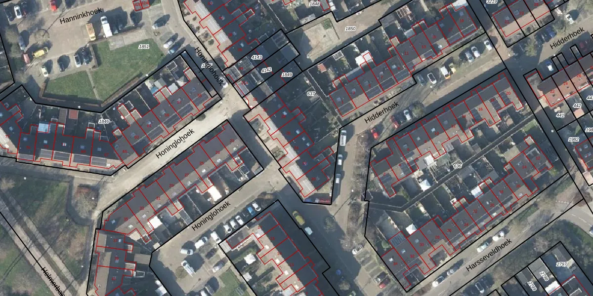 Het perceel waarop Honinglohoek 24 staat heeft een oppervlakte van 2176 m². Dit is een zeer groot perceel. De perceeloppervlakte wordt geregistreerd door het Kadaster. Gedetailleerde informatie over de maten van dit perceel kunt u vinden in het rapport Kadastrale kaart met maatvoering van Honinglohoek 24.