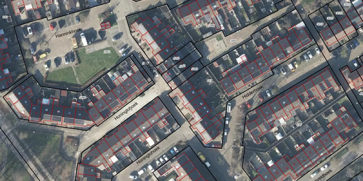 Het perceel waarop Honinglohoek 30 staat heeft een oppervlakte van 2176 m². Dit is een zeer groot perceel. De perceeloppervlakte wordt geregistreerd door het Kadaster. Gedetailleerde informatie over de maten van dit perceel kunt u vinden in het rapport Kadastrale kaart met maatvoering van Honinglohoek 30.