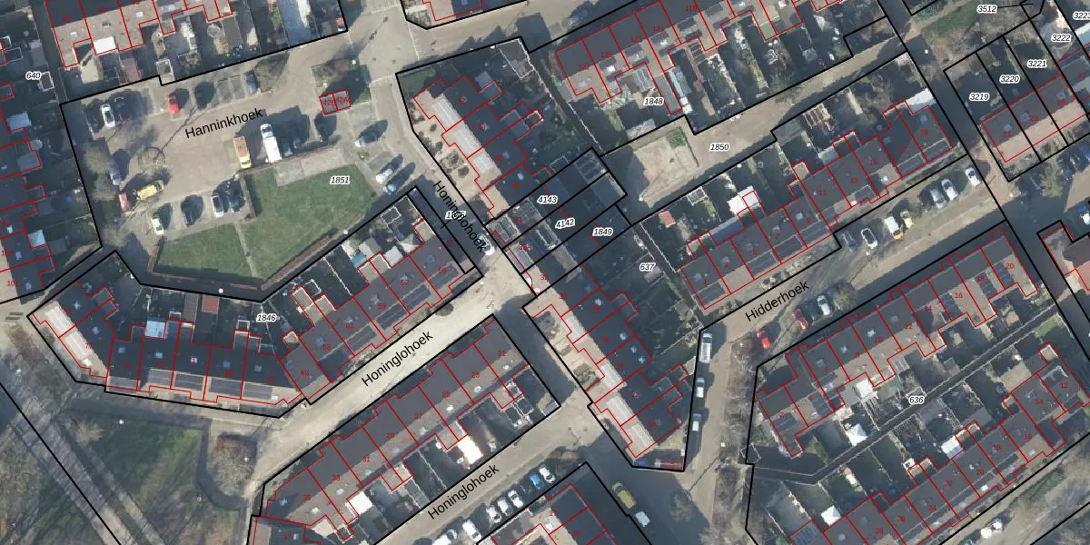 Gebruik de zoekbalk of klik op een perceel voor informatie over de adressen binnen dit perceel.