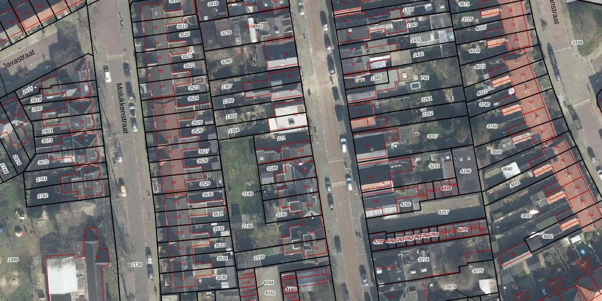 Het perceel waarop Hoogstraat 102 staat heeft een oppervlakte van 185 m². Dit is een middelgroot perceel. De perceeloppervlakte wordt geregistreerd door het Kadaster. Gedetailleerde informatie over de maten van dit perceel kunt u vinden in het rapport Kadastrale kaart met maatvoering van Hoogstraat 102.