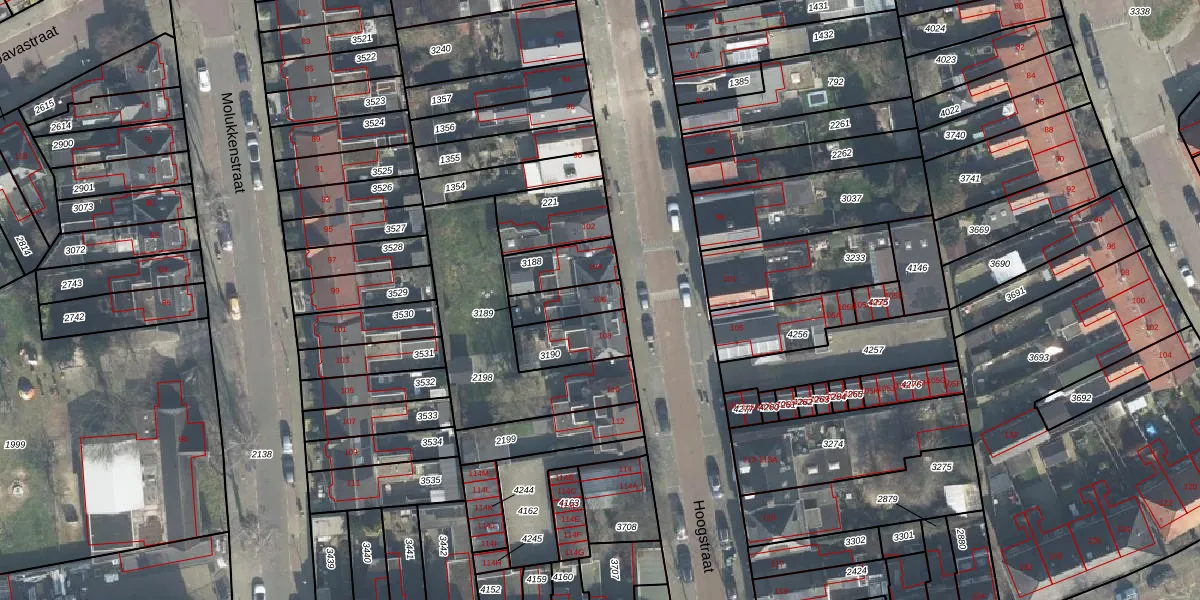 Het perceel waarop Hoogstraat 106 staat heeft een oppervlakte van 97 m². Dit is een klein perceel. De perceeloppervlakte wordt geregistreerd door het Kadaster. Gedetailleerde informatie over de maten van dit perceel kunt u vinden in het rapport Kadastrale kaart met maatvoering van Hoogstraat 106.