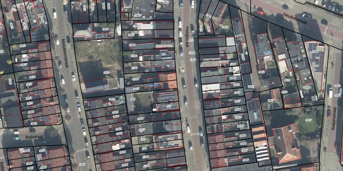 Gebruik de zoekbalk of klik op een perceel voor informatie over de adressen binnen dit perceel.