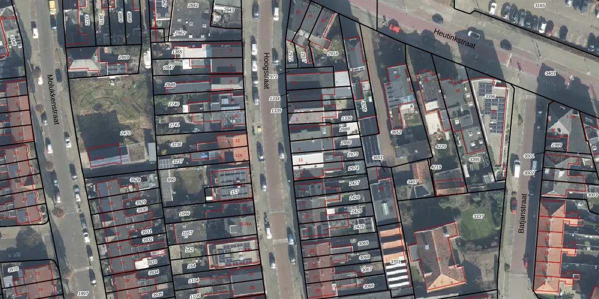 Het perceel waarop Hoogstraat 9 staat heeft een oppervlakte van 102 m². Dit is een middelgroot perceel. De perceeloppervlakte wordt geregistreerd door het Kadaster. Gedetailleerde informatie over de maten van dit perceel kunt u vinden in het rapport Kadastrale kaart met maatvoering van Hoogstraat 9.