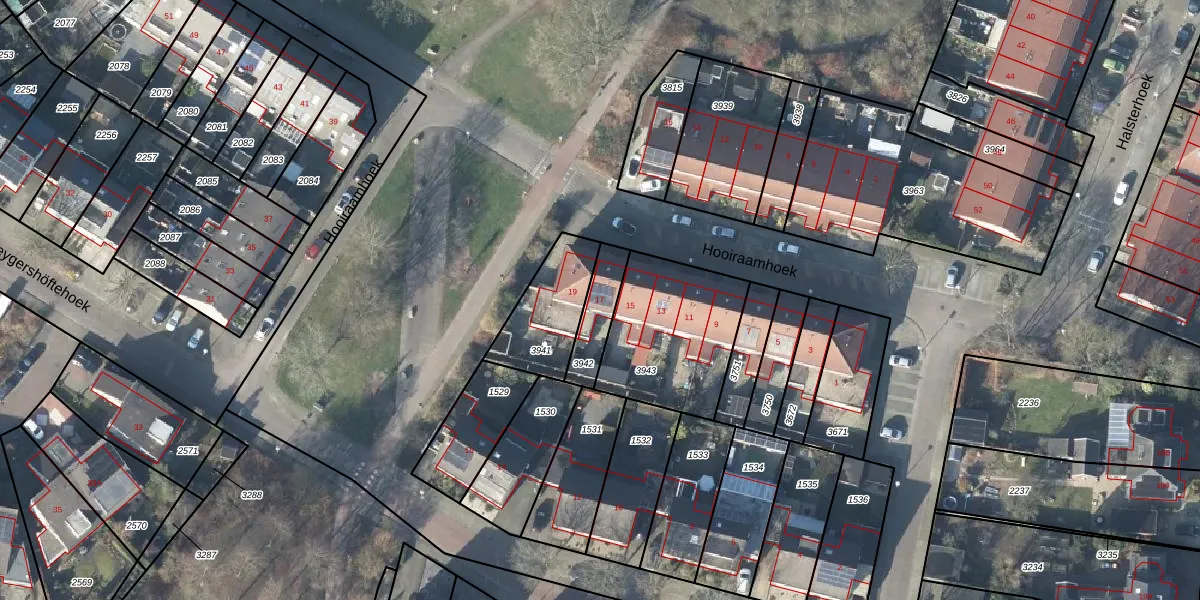 Hooiraamhoek 17 is gelegen op kadastraal perceel LNK00U3942. Deze kadastrale aanduiding is uniek en wordt gebruikt door het Kadaster om eigendomsrechten en andere zakelijke rechten vast te leggen. Het perceel maakt onderdeel uit van de kadastrale gemeente Lonneker.