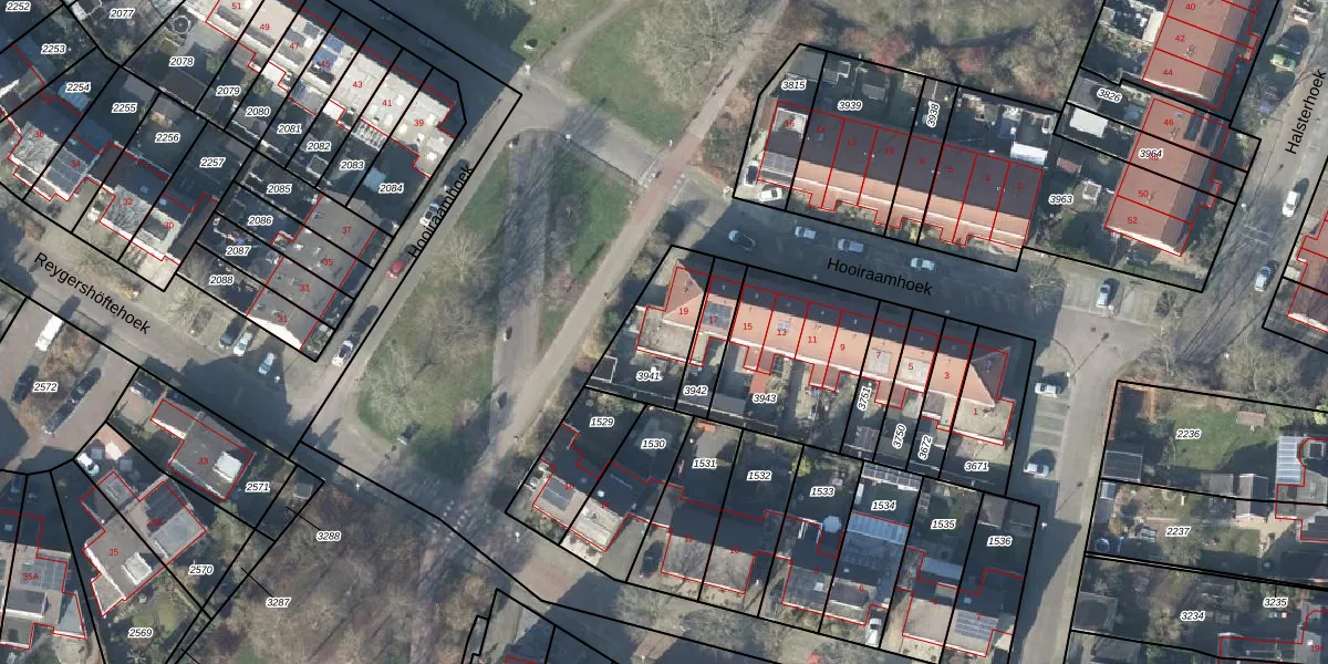 Hooiraamhoek 19 is gelegen op kadastraal perceel LNK00U3941. Deze kadastrale aanduiding is uniek en wordt gebruikt door het Kadaster om eigendomsrechten en andere zakelijke rechten vast te leggen. Het perceel maakt onderdeel uit van de kadastrale gemeente Lonneker.