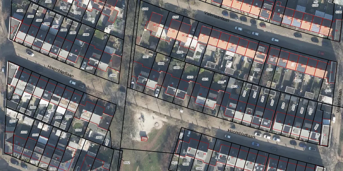 Het perceel waarop Hoornbladlaan 25 staat heeft een oppervlakte van 225 m². Dit is een middelgroot perceel. De perceeloppervlakte wordt geregistreerd door het Kadaster. Gedetailleerde informatie over de maten van dit perceel kunt u vinden in het rapport Kadastrale kaart met maatvoering van Hoornbladlaan 25.