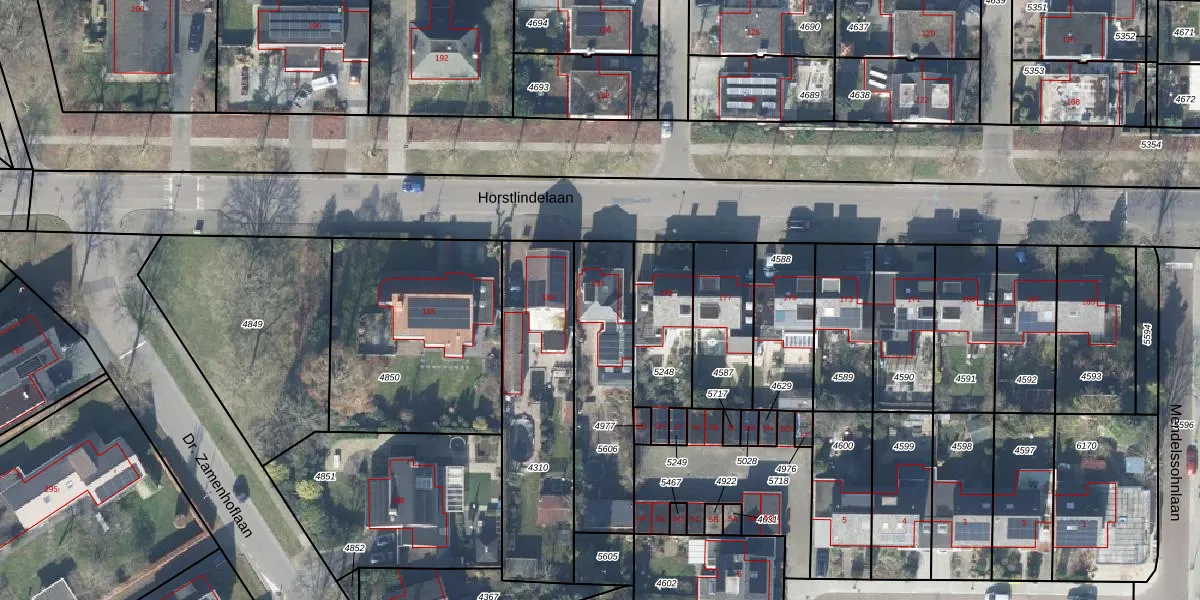 Het perceel waarop Horstlindelaan 181 staat heeft een oppervlakte van 492 m². Dit is een groot perceel. De perceeloppervlakte wordt geregistreerd door het Kadaster. Gedetailleerde informatie over de maten van dit perceel kunt u vinden in het rapport Kadastrale kaart met maatvoering van Horstlindelaan 181.