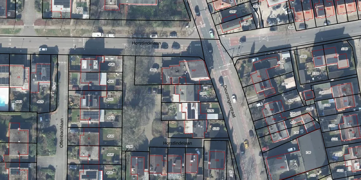 Horstlindelaan 3 is gelegen op kadastraal perceel LNK00B5141. Deze kadastrale aanduiding is uniek en wordt gebruikt door het Kadaster om eigendomsrechten en andere zakelijke rechten vast te leggen. Het perceel maakt onderdeel uit van de kadastrale gemeente Lonneker.