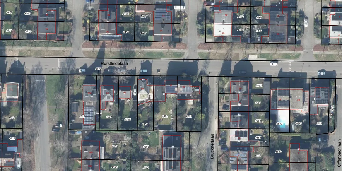 Het perceel waarop Horstlindelaan 33 staat heeft een oppervlakte van 437 m². Dit is een groot perceel. De perceeloppervlakte wordt geregistreerd door het Kadaster. Gedetailleerde informatie over de maten van dit perceel kunt u vinden in het rapport Kadastrale kaart met maatvoering van Horstlindelaan 33.