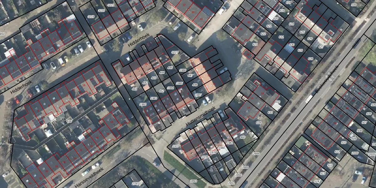 Gebruik de zoekbalk of klik op een perceel voor informatie over de adressen binnen dit perceel.