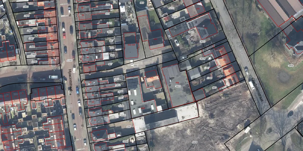 Hyacintstraat 40-A is gelegen op kadastraal perceel LNK00Q965. Deze kadastrale aanduiding is uniek en wordt gebruikt door het Kadaster om eigendomsrechten en andere zakelijke rechten vast te leggen. Het perceel maakt onderdeel uit van de kadastrale gemeente Lonneker.