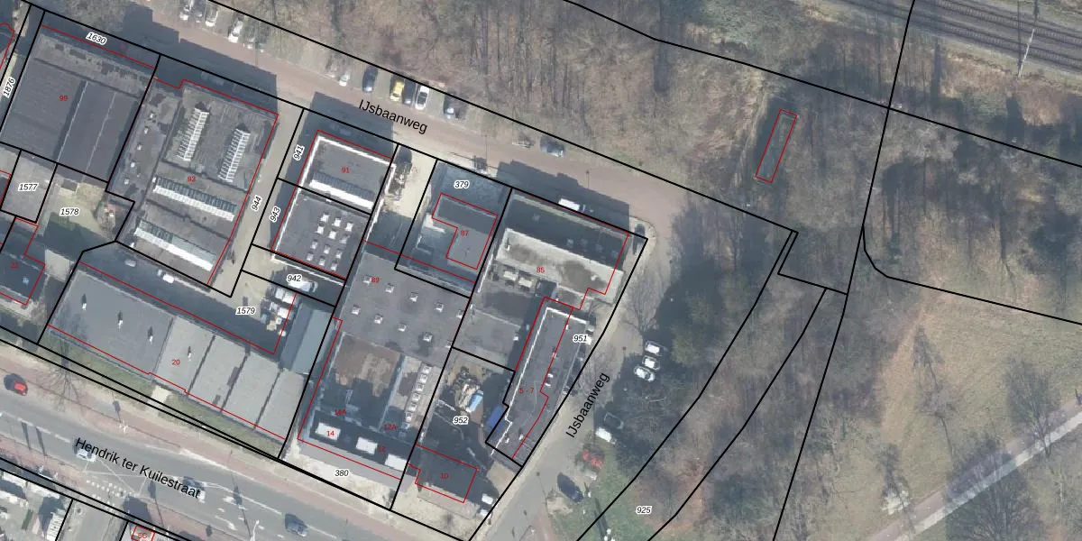Het perceel waarop IJsbaanweg 85 staat heeft een oppervlakte van 955 m². Dit is een groot perceel. De perceeloppervlakte wordt geregistreerd door het Kadaster. Gedetailleerde informatie over de maten van dit perceel kunt u vinden in het rapport Kadastrale kaart met maatvoering van IJsbaanweg 85.