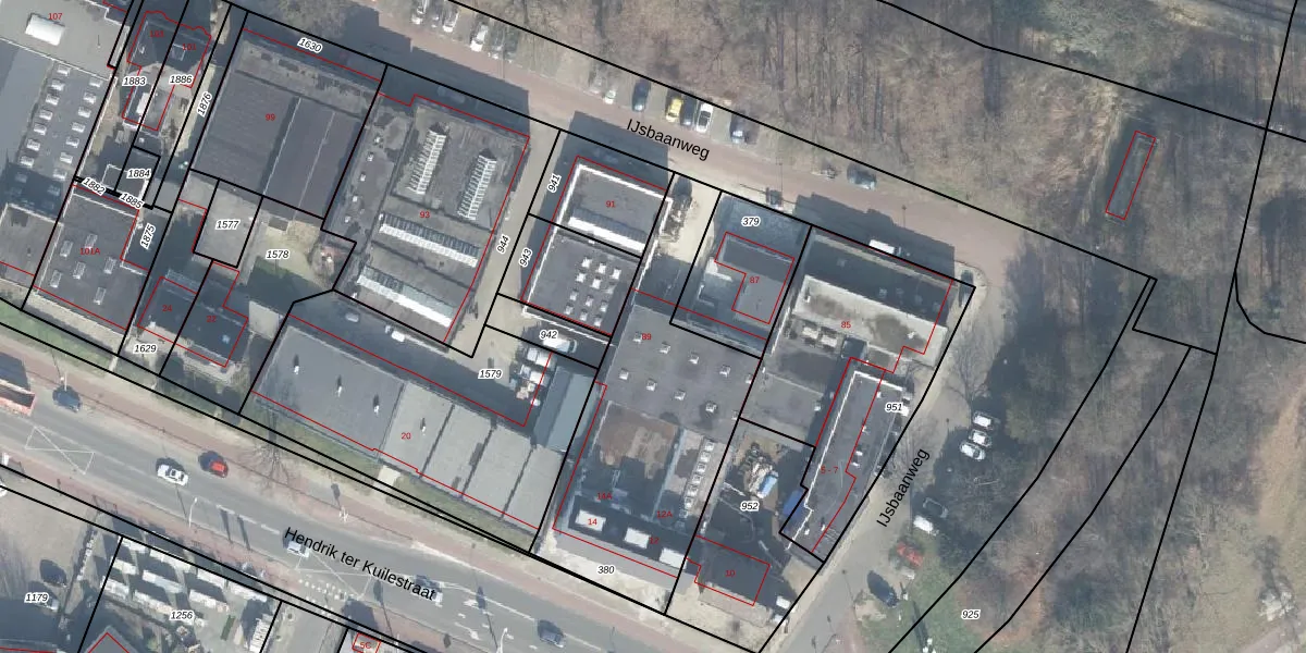 Het perceel waarop IJsbaanweg 89 staat heeft een oppervlakte van 1105 m². Dit is een zeer groot perceel. De perceeloppervlakte wordt geregistreerd door het Kadaster. Gedetailleerde informatie over de maten van dit perceel kunt u vinden in het rapport Kadastrale kaart met maatvoering van IJsbaanweg 89.