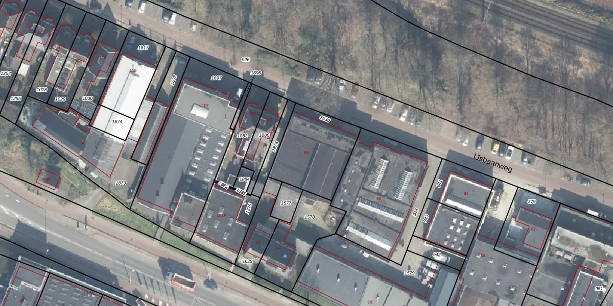 Het perceel waarop IJsbaanweg 99 staat heeft een oppervlakte van 577 m². Dit is een groot perceel. De perceeloppervlakte wordt geregistreerd door het Kadaster. Gedetailleerde informatie over de maten van dit perceel kunt u vinden in het rapport Kadastrale kaart met maatvoering van IJsbaanweg 99.
