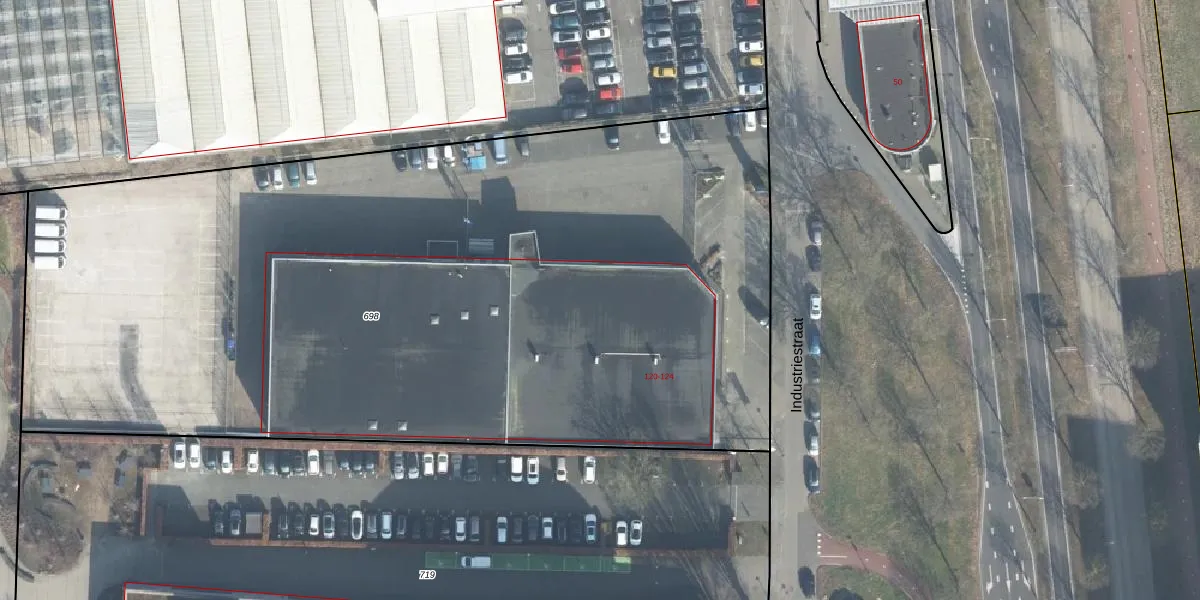 Het perceel waarop Industriestraat 124 staat heeft een oppervlakte van 6027 m². Dit is een zeer groot perceel. De perceeloppervlakte wordt geregistreerd door het Kadaster. Gedetailleerde informatie over de maten van dit perceel kunt u vinden in het rapport Kadastrale kaart met maatvoering van Industriestraat 124.