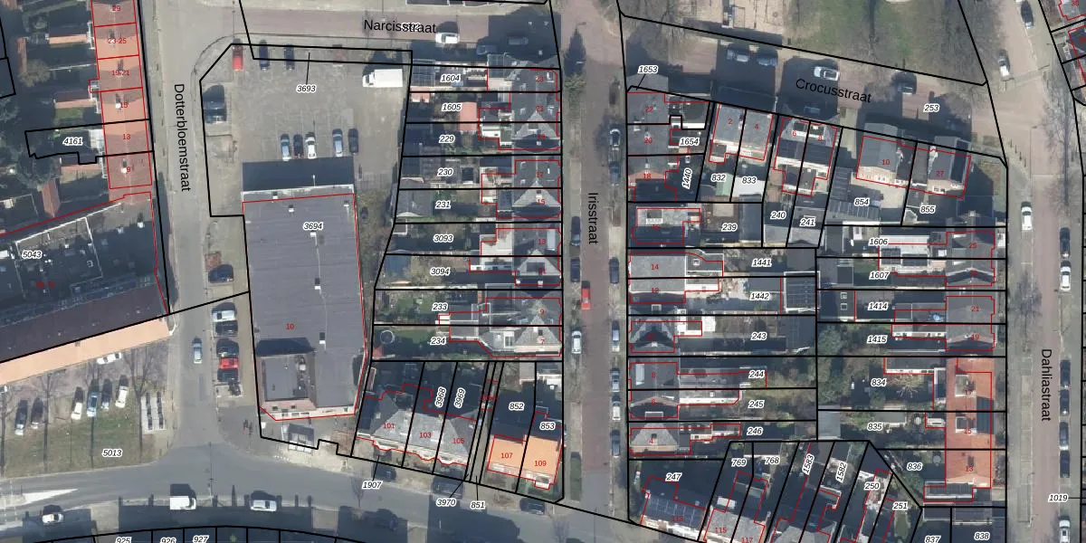 Het perceel waarop Irisstraat 11 staat heeft een oppervlakte van 210 m². Dit is een middelgroot perceel. De perceeloppervlakte wordt geregistreerd door het Kadaster. Gedetailleerde informatie over de maten van dit perceel kunt u vinden in het rapport Kadastrale kaart met maatvoering van Irisstraat 11.