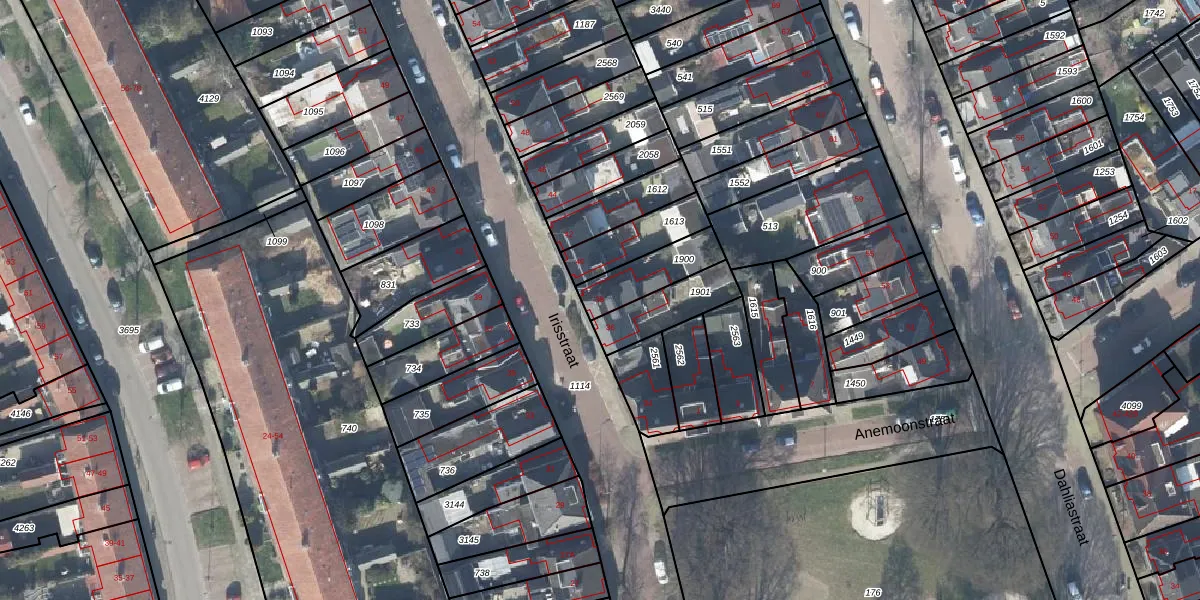 Het perceel waarop Irisstraat 38 staat heeft een oppervlakte van 156 m². Dit is een middelgroot perceel. De perceeloppervlakte wordt geregistreerd door het Kadaster. Gedetailleerde informatie over de maten van dit perceel kunt u vinden in het rapport Kadastrale kaart met maatvoering van Irisstraat 38.