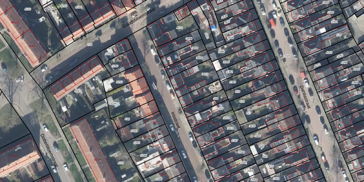 Het perceel waarop Irisstraat 64 staat heeft een oppervlakte van 301 m². Dit is een groot perceel. De perceeloppervlakte wordt geregistreerd door het Kadaster. Gedetailleerde informatie over de maten van dit perceel kunt u vinden in het rapport Kadastrale kaart met maatvoering van Irisstraat 64.